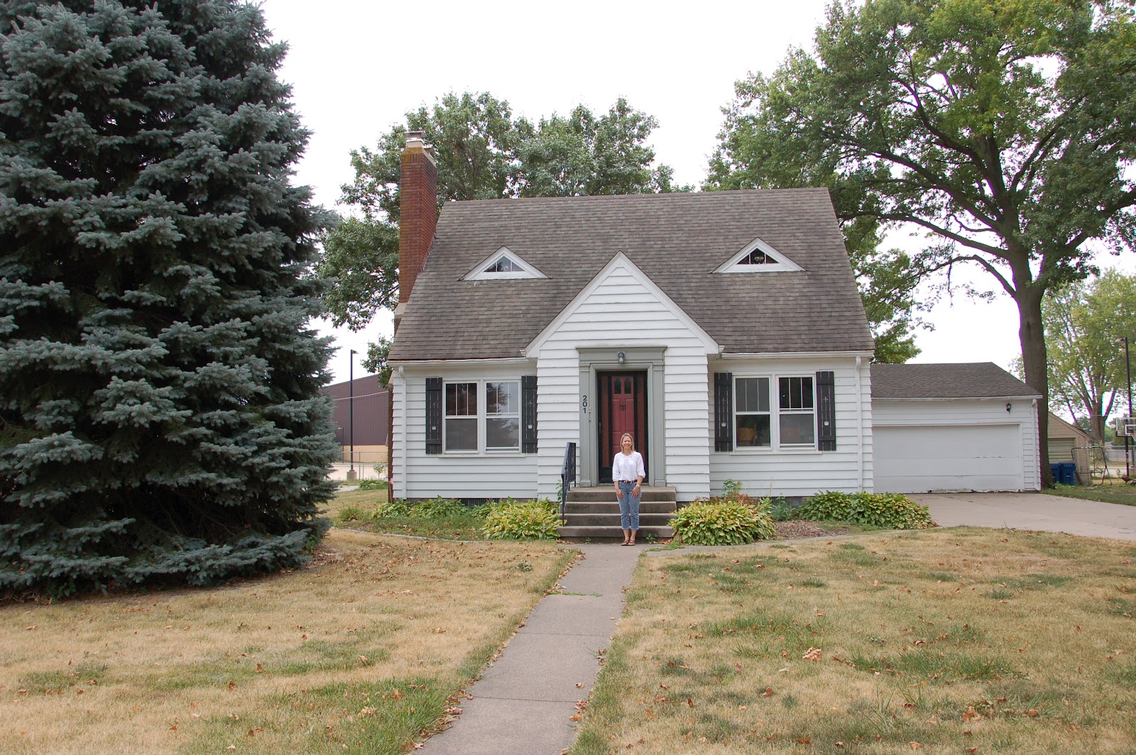 Nary a garage door was left hanging properly on it's hinge. It didn't help that Iowa is having the worst drought. Ever. The grass was all dead. No one wants to fix up a house on a street. They build in the new developments on the edge of town.