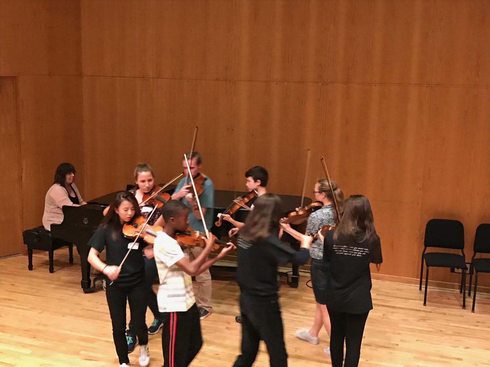 A bunch of those kids came from New York and a sister program in Chicago, to show us what it's all about. It's everything Shinichi Suzuki wanted. Good kids with good hearts playing expressively with good tone and good intonation. Connecting together with music, through improvisation. Their whole hour concert was improvised.